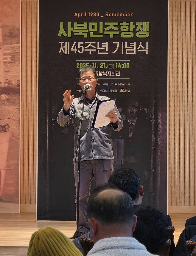 진폐단체 "대통령 조세이탄광 언급에…정부가 나서야"홍춘봉 기자2026. 1. 15. 11:21타임톡타임톡요약보기음성으로 듣기번역 설정글씨크기 조절하기인쇄하기진폐단체, 조세이탄광 한일 실무협의 환영 성명"바닷속에 갇힌 136명 징용광부, 국가가 응답해야"21일 정선군 사북종합복지회관에서 개최된 사북민주항쟁 45주년 기념식에 참석한 성희직 광부시인...